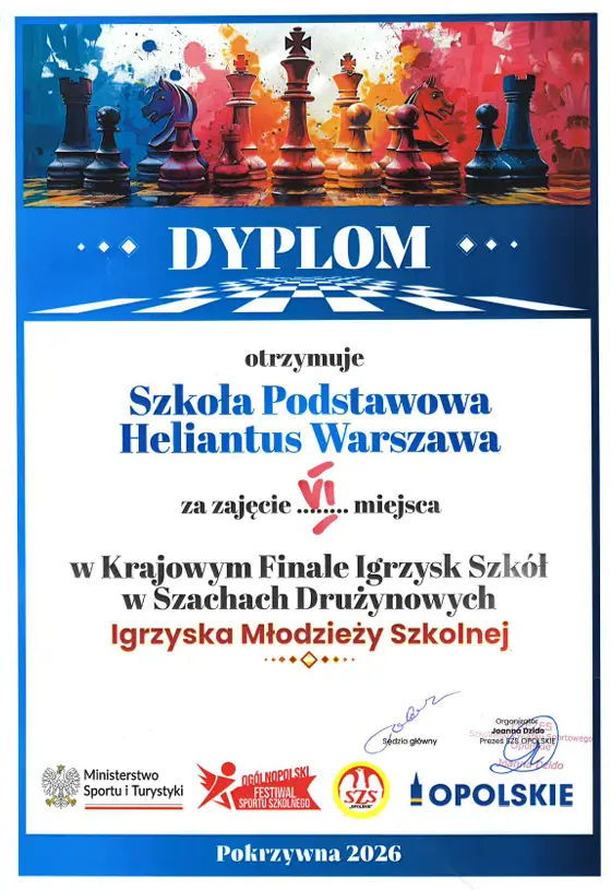 Nasza drużyna szachowa po zwycięstwie na etapie dzielnicowym i wojewódzkim awansowała do ogólnopolskiego finału.